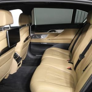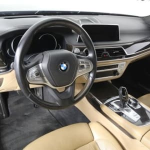 В продаже BMW 750Li xDrive 2016 года выпуска. Машина в черном цвете в сочетании с светло-коричневым кожаным салоном.