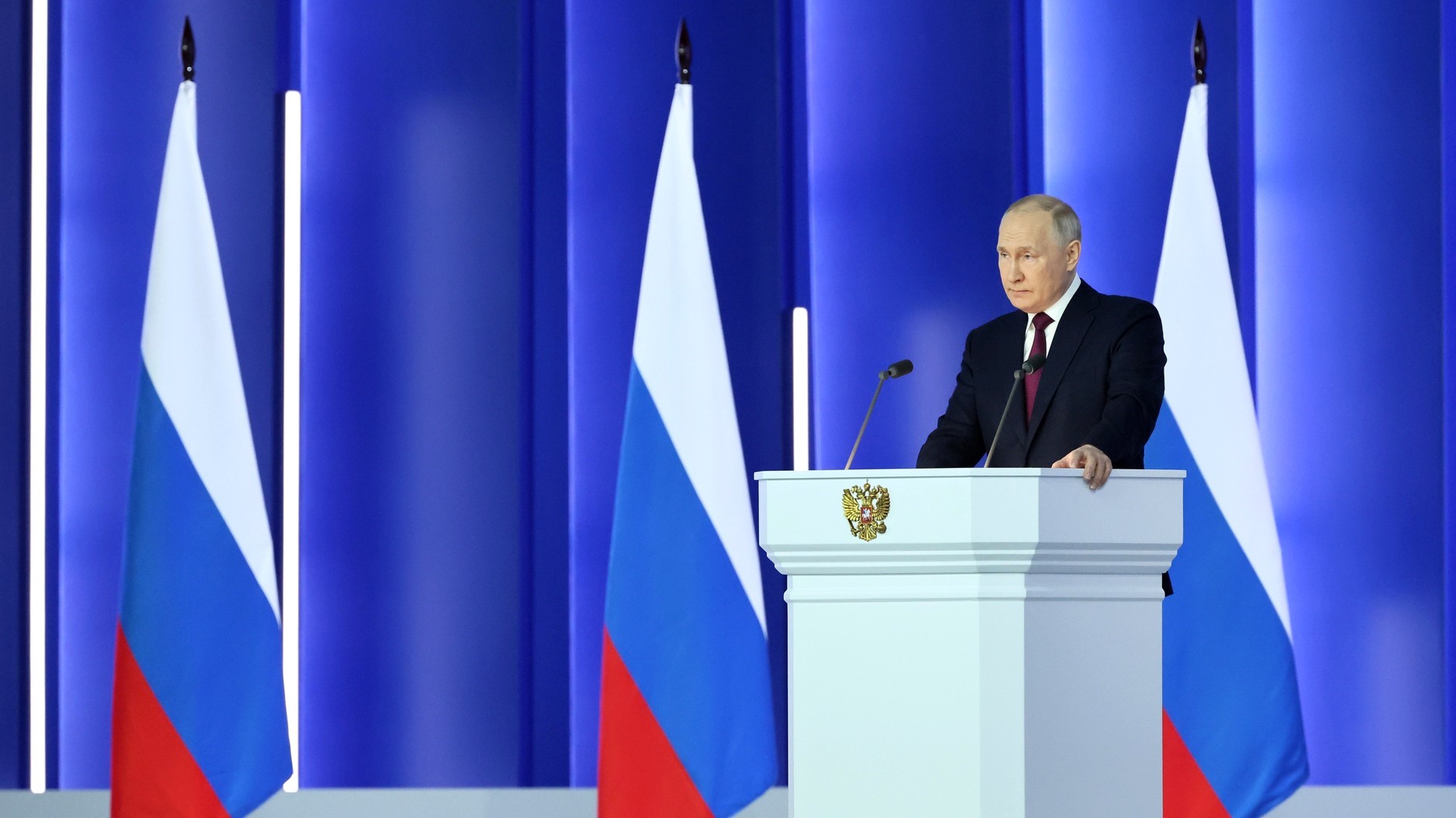 Президент России Владимир Путин обратился с посланием к Федеральному собранию 21 февраля. Мероприятие состоялось в московском Гостином дворе. Выступление длилось 1 час 45 минут.