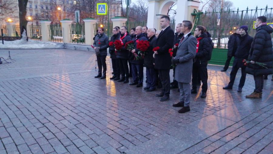 Делегация ЦК КПРФ возложила цветы к памятнику В.И. Ленину у здания Смольного