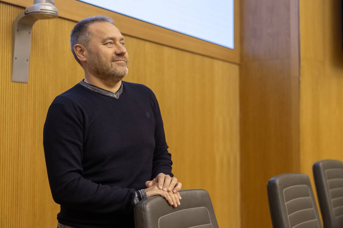 Встреча с Александром Бельским прошла при аншлаге — в конференц-зале «Семёнов» научно-исследовательского корпуса «Технополис Политех» студенты заняли даже ступеньки и проходы.