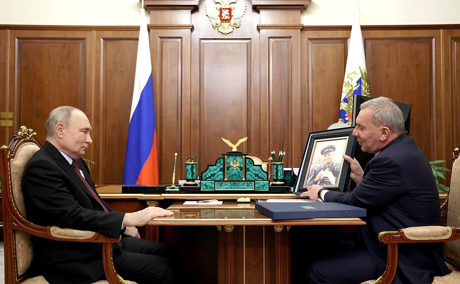 Гендиректор «Роскосмоса» Юрий Борисов подарил президенту России Владимиру Путину портрет Юрия Гагарина в честь 90-летия со дня рождения советского космонавта.