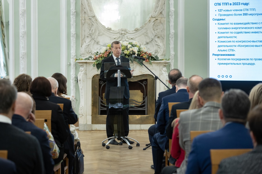 Открыл заседание президент СПб ТПП Владимир Катенев , он сообщил об итогах деятельности Санкт-Петербургской торгово-промышленной палаты в 2023 году и планах на 2024 год. Президент СПб ТПП подчеркнул важность развития и поддержку российского предпринимательства, а также содействия установлению эффективного диалога между бизнес-сообществом и органами государственной власти.