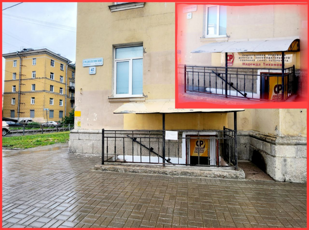 Надежда Тихонова работала депутатом петербургского парламента шестого созыва с 2016 по 2021 годы. В сентябре 2021 года она не смогла переизбраться в действующий созыв городского парламента по партийным спискам. Не взяла она и 212 округ на выборах в Госдуму. Фактически у нее только один политический статус – руководителя петербургского отделения эсеров. На партийном сайте указаны адреса ее приемных как главы реготделения. Там значится помещение на Среднеохтинском проспекте, дом 42/1. Но длительное время на входе в полуподвальное помещение висела вывеска «Общественная приемная депутата Законодательного собрания Санкт-Петербурга Надежда Тихонова». Внутри, сразу за дверью, расположен стенд с фотографией политика и объявление «Приемная депутата Законодательного собрания Санкт-Петербурга Надежды Тихоновой, часы работы: понедельник-четверг, 11.00-19.00».