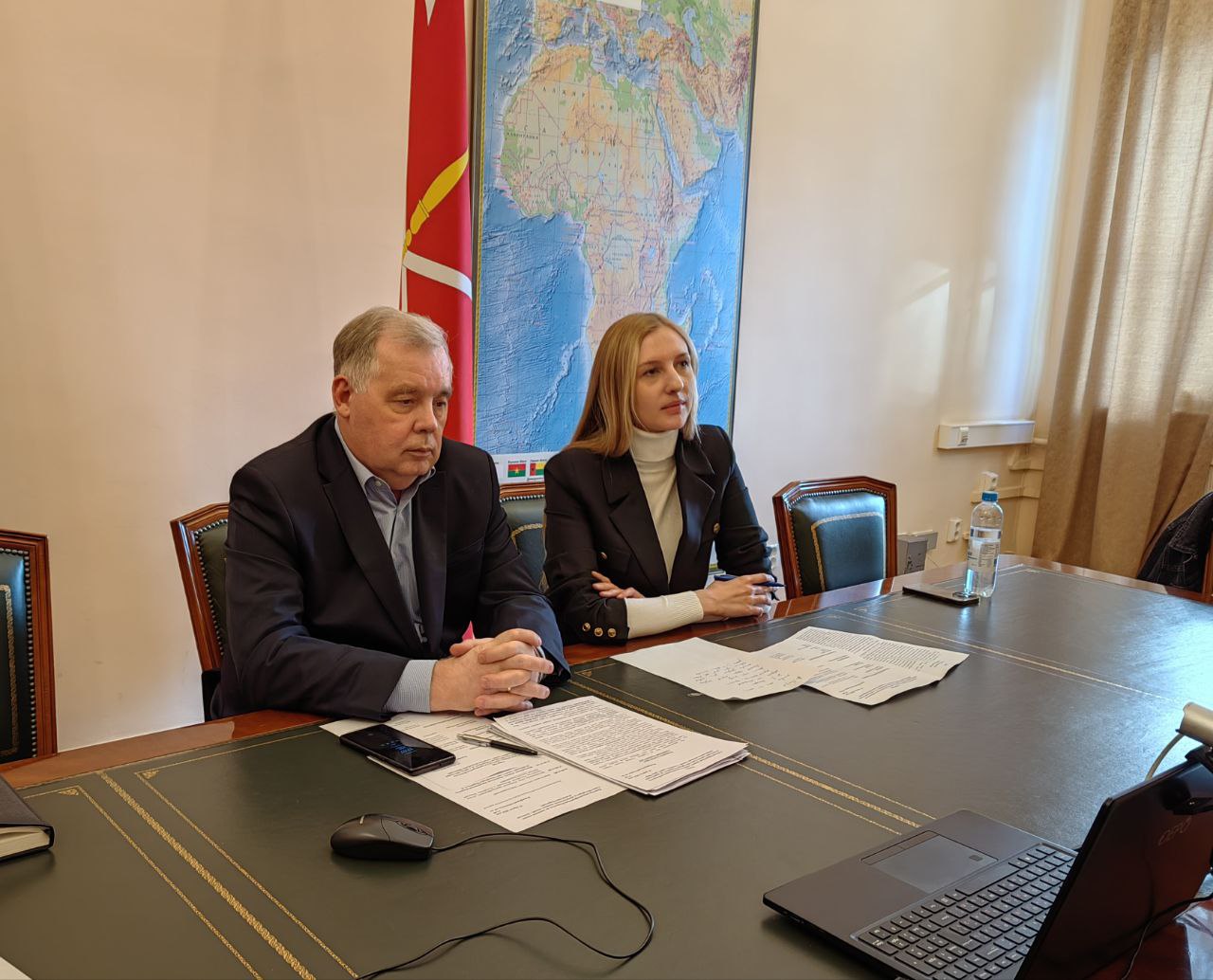 11 апреля первый заместитель председателя Комитета по внешним связям Санкт‑Петербурга Сергей Марков провел встречу в формате видеоконференции с руководителем Департамента внешних связей Асунсьона Сандрой Диас и депутатом Муниципального Совета парагвайской столицы Альваро Грау.