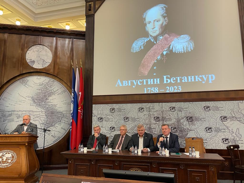 В штаб-квартире Русского географического общества (РГО) под председательством директора департамента, руководителя штаб-квартиры в г. Санкт-Петербурге К.Р. Мицкуса состоялось торжественное заседание, посвященное 265-ой годовщине со дня рождения организатора и первого ректора старейшего транспортного высшего учебного заведения России — ПГУПС — и презентации книги «Всемирное наследие Бетанкура».