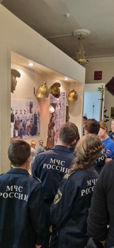 Ребята посетили экспозиции выставки, которые располагаются в залах первого и второго этажа здания. Их познакомили с историей пожарной охраны города: макеты конного обоза, подлинные экспонаты медных касок, механические лестницы и каланчи дают образное представление об оснащении пожарных в XIX веке. Часть экспозиции исторического зала посвящена подвигу пожарных в годы Великой Отечественной войны, что позволило ребятам по достоинству оценить героизм людей, защищавших осажденный город.
