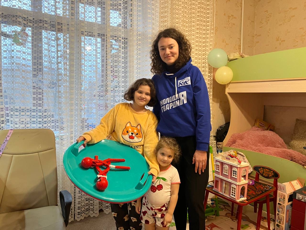 В Центральном районе активисты встретились с семьей Марии, чей муж отправился на специальную военную операцию в качестве добровольца. Ребята отгадывали тематические загадки, за что получили приятные призы.
