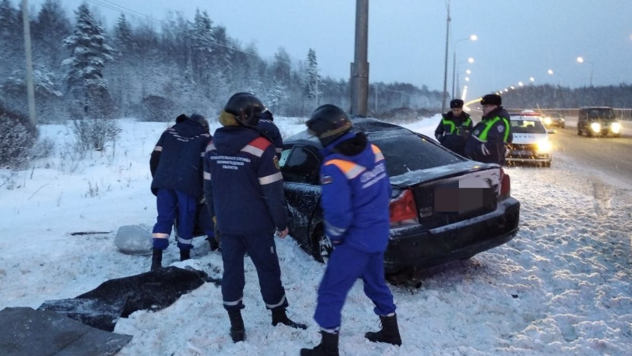 Седан «Вольво» не справился с управлением и врезался в столб в Тосненском районе Ленинградской области. Информацию об инциденте предоставили в пресс-службе Аварийно-спасательной службы региона.