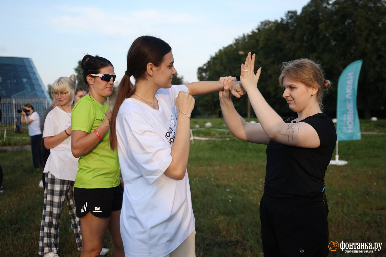 Алиса Иринина делится навыками самообороны с участницами на Крестовском острове.