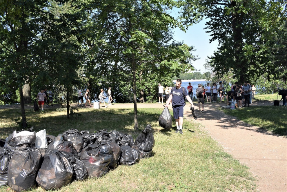 Берег Невы у бульвара Стеклянного городка очистили от мусора