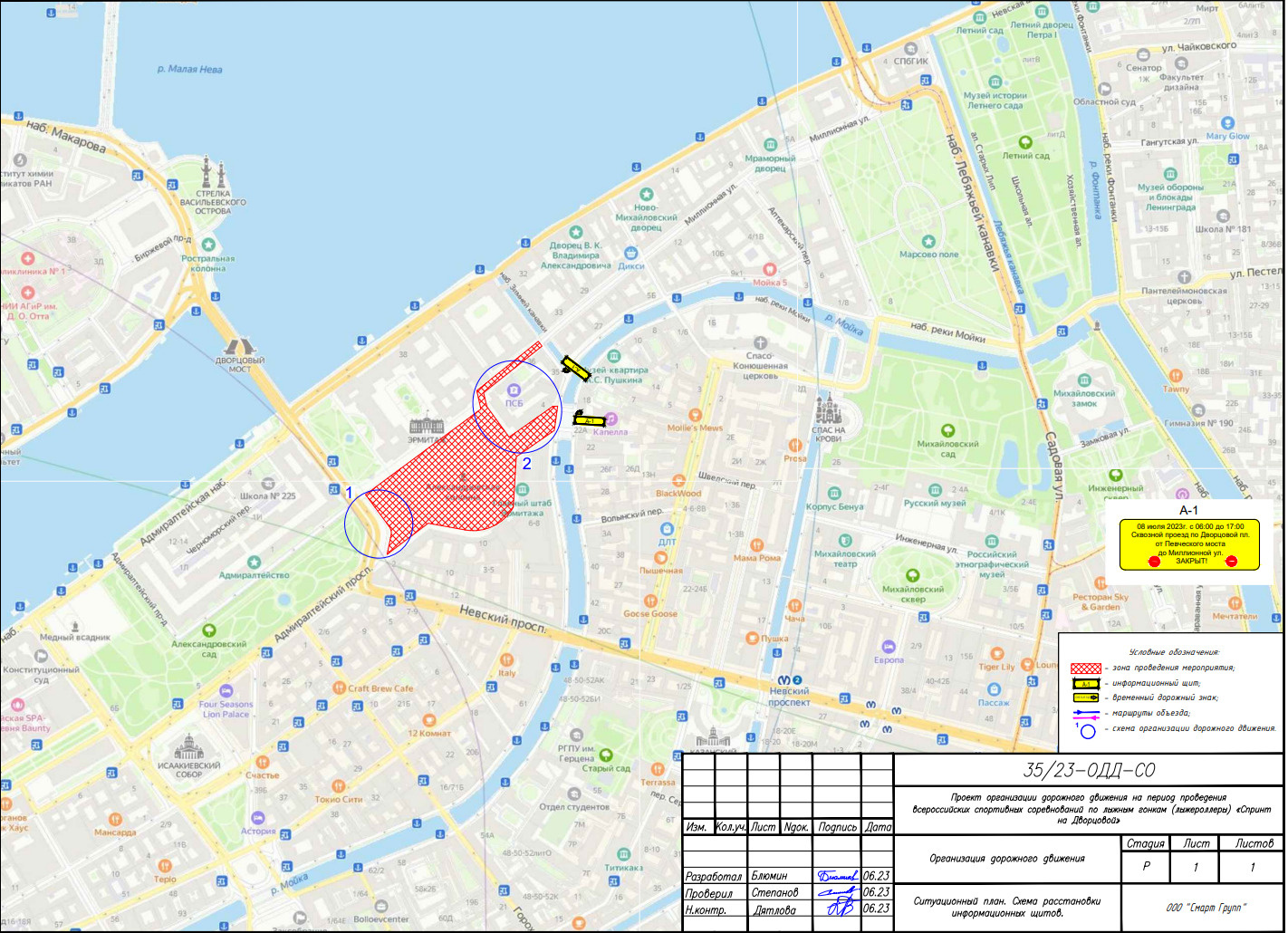 С полуночи до 17 часов 8 июля для проведения Всероссийских соревнований по лыжным гонкам «Спринт на Дворцовой» запретят парковаться на Миллионной улице от Дворцовой площади до набережной Зимней канавки и в проезде вдоль дома 4 по Дворцовой площади. А с 6:00 до 17:00 на участке Миллионной улицы от Дворцовой площади до набережной Зимней канавки и на Дворцовой площади перекроют движение.