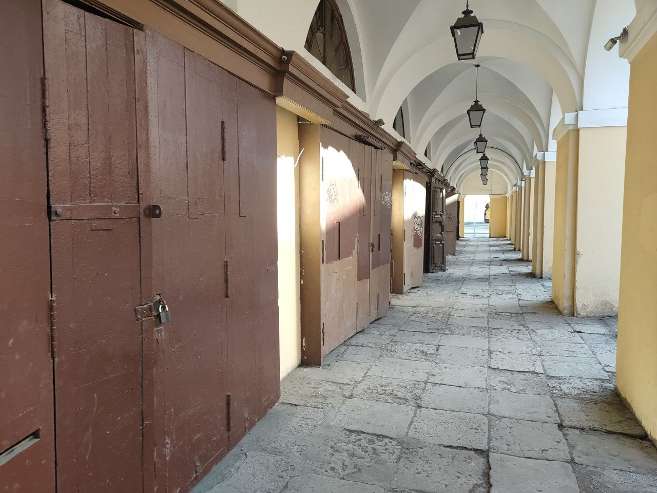 Квартал между улицами Думская, Ломоносова и набережной канала Грибоедова, еще год назад бывший одним из центров ночной жизни Петербурга, продолжает оставаться в запустении. Окна большинства заведений наглухо закрыты железными ставнями или заклеены надписями «Аренда». где-то висят предписания об освобождении помещения, выданные комитетом по контролю за имуществом со смытыми дождем чернилами, где-то остаются цепи, навешенные на замки Следственным комитетом прошлой весной.