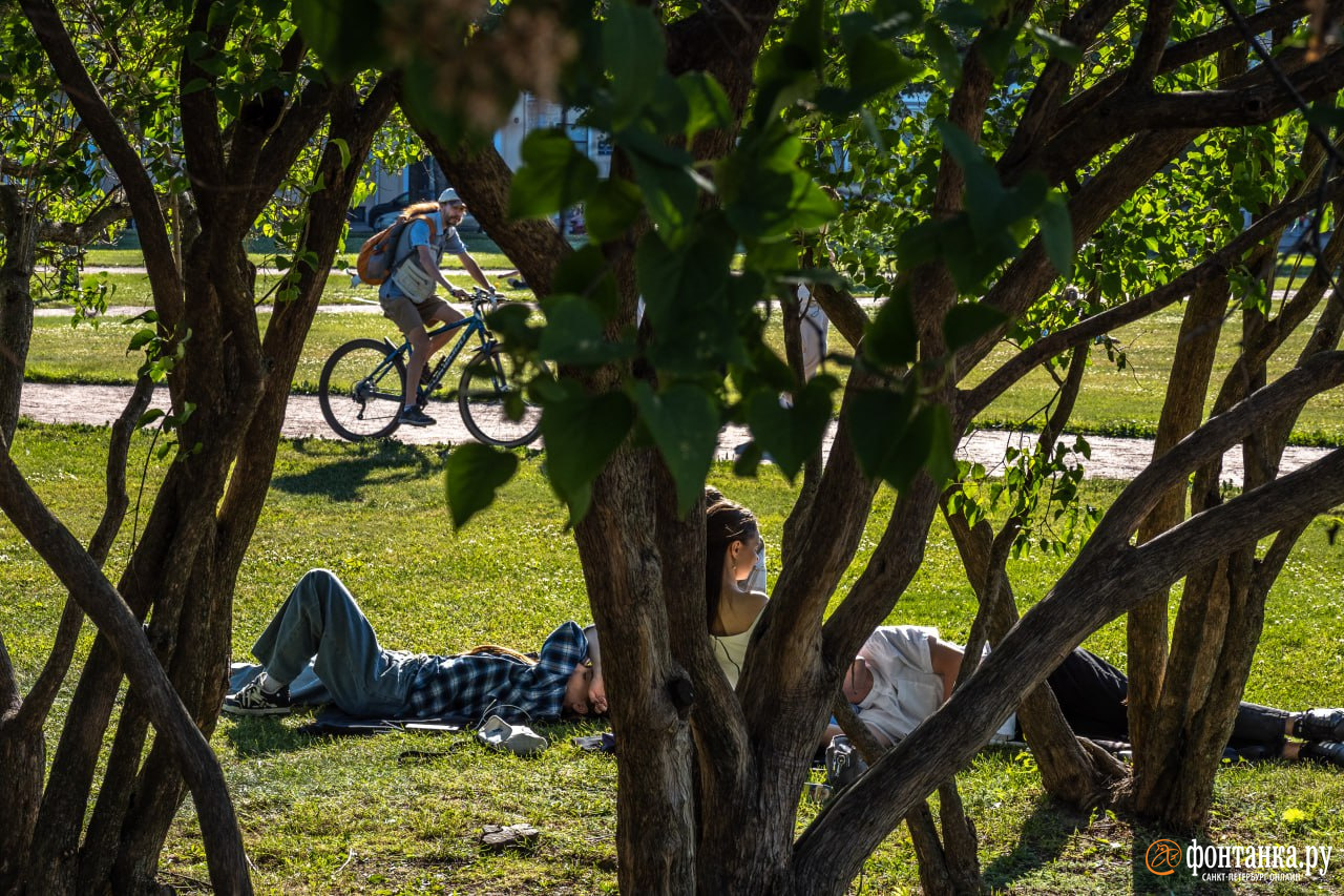 Когда воздух становится теплее, западный ветер усиливается и, поскольку он дует с акватории Финского залива, охлаждает город. Поэтому в прибрежных районах города, скорее всего, будет не выше 23–24. А вот в центральных и восточных — 25–27 градусов.