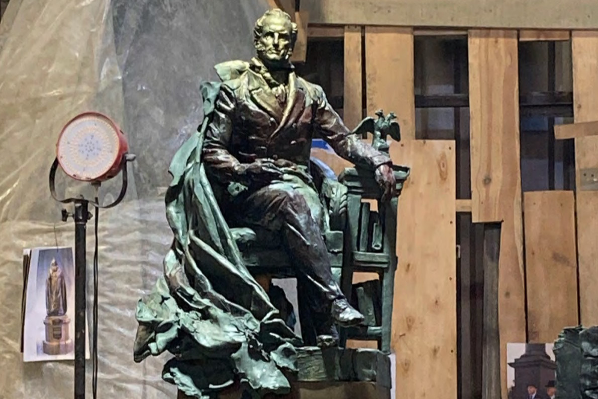 СПбГУ хочет заменить памятник универсанту перед главным входом в здание 12 коллегий графом Уваровым. 19 июля на Градостроительном совете рассмотрели эскиз монумента. Зачем менять «Крылатого гения» на автора триады «Православие, самодержавие, народность», не обсуждали, ведь вопрос уже решили «наверху». Но по художественной части эскизу и его столичному автору досталось.