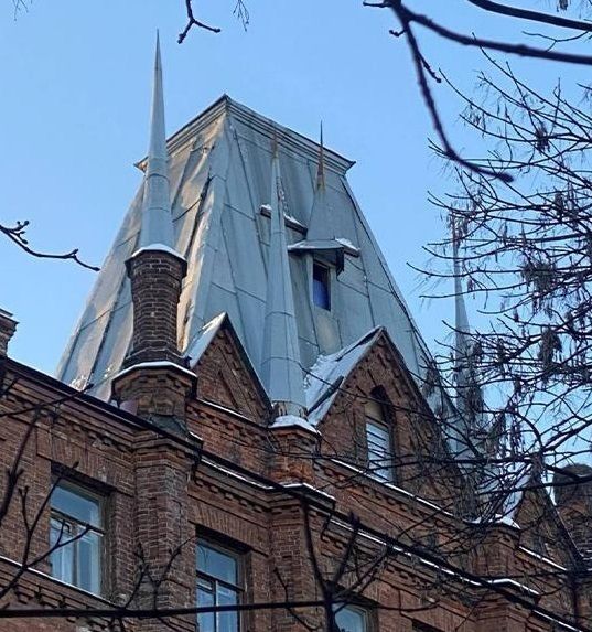 В Петербурге с Дома Еремеевой исчез второй шпиль. Постройка находится в Василеостровском районе. Об утрате элемента неготической постройки сообщил автор Telegram-канала «Архитектурный детектив».