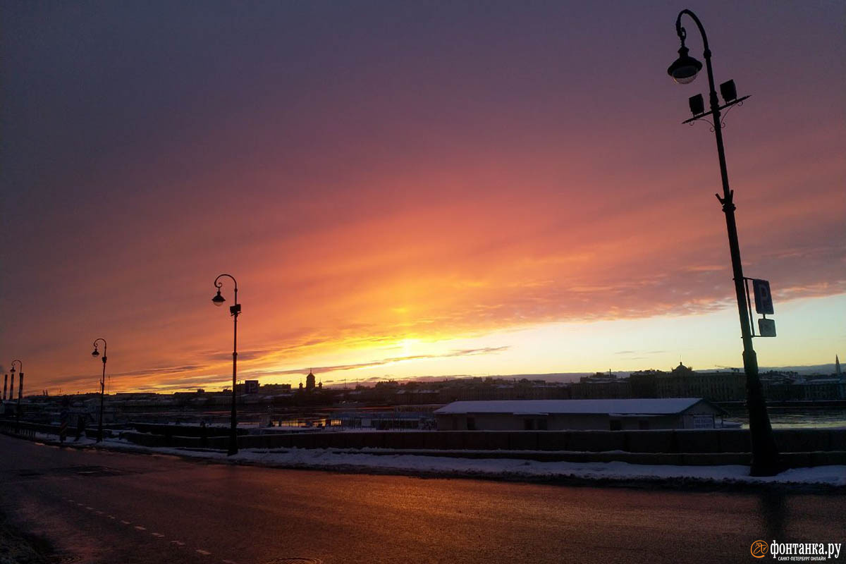 Субботний вечер выдался в Петербурге не самым теплым, но умиротворяющим. Закат уже отгорел, но вы можете еще раз им полюбоваться вместе с «Фонтанкой».
