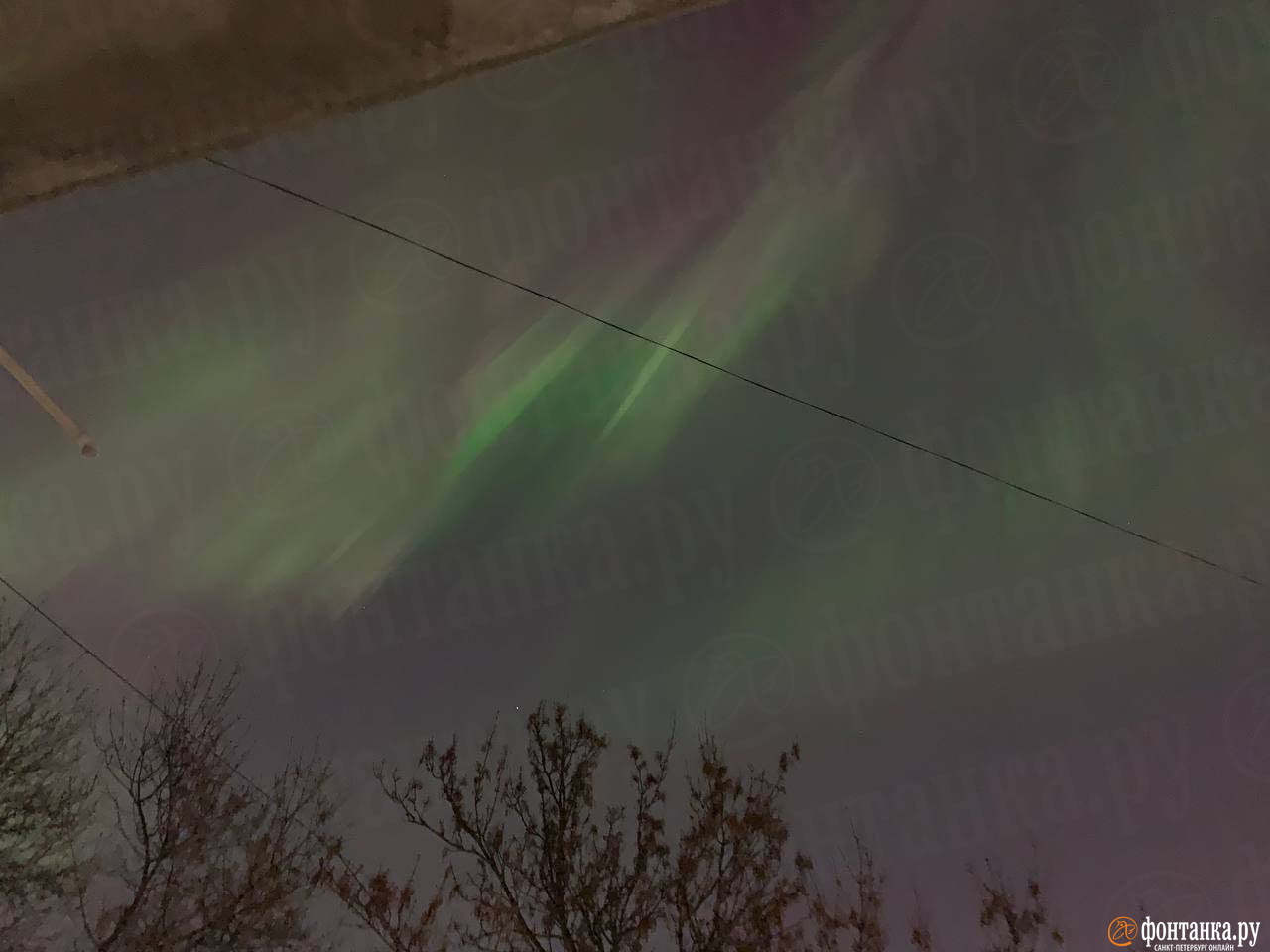 Фото: « Фонтанка . ру ». Фото: « Фонтанка . ру ».Более сильное и яркое северное сияние с фиолетовым оттенком наблюдали жители Пушкина.