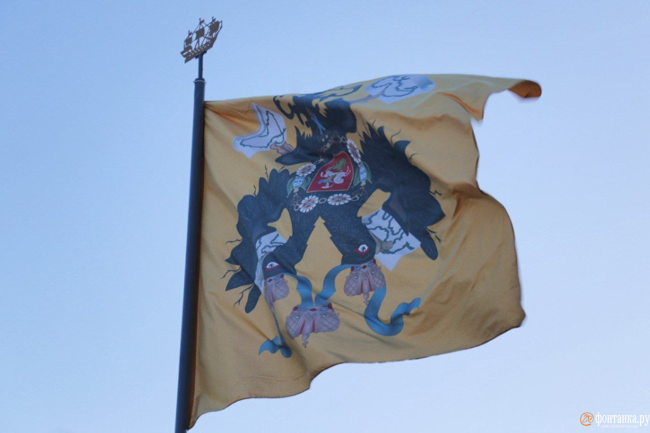 Штандарты с изображением орла в неподобающем виде заметили читатели «Фонтанки» 19 мая недалеко от домика Петра I. Символ государя императора повис вверх тормашками.