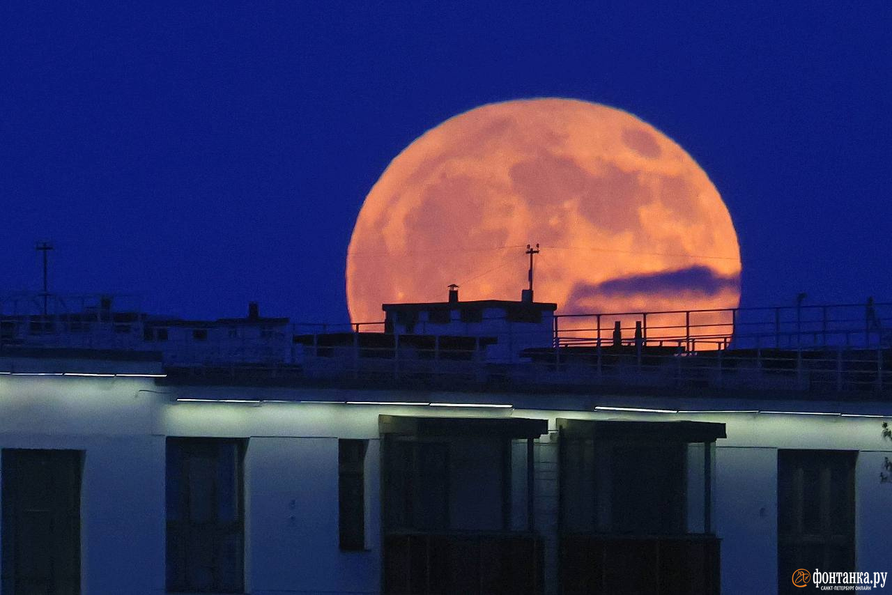 Как персик. Над петербургскими крышами показалась потрясающая луна