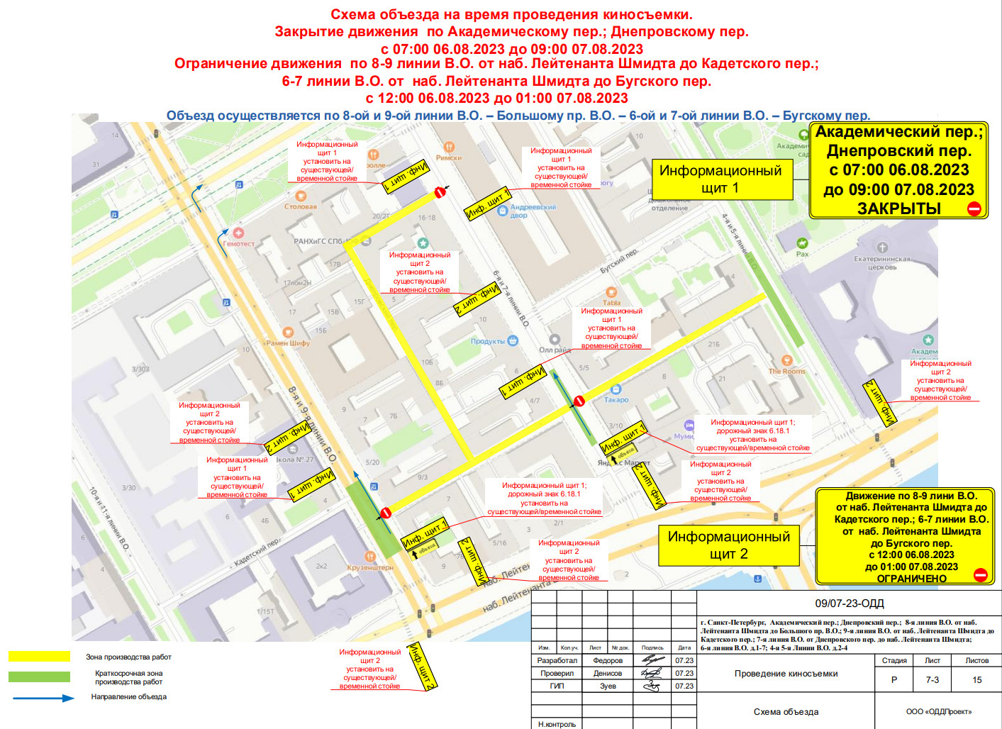 Также с 0:00 5 августа до 23:59 6 августа в Академическом и Днепропетровском переулках, на участках 8-й линии В. О. от набережной Лейтенанта Шмидта до Большого проспекта В. О., 7-й линии В.О. от Днепропетровского переулка до набережной Лейтенанта Шмидта, 6-й линии В. О. от дома 10 по Академическому переулку до Бугского переулка и 4–5-й линии В. О. от дома 2/19 по 5-й линии В. О. до Бугского переулка запретят парковаться.