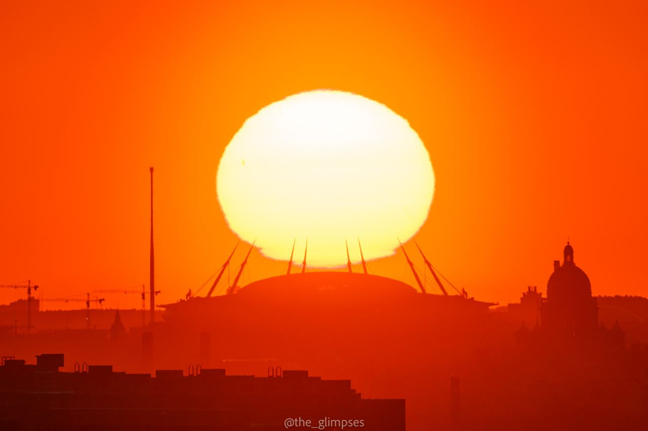 Когда солнце в небе размером с «Зенит Арену». Погода позволила снять архитектурные шедевры за 21 км