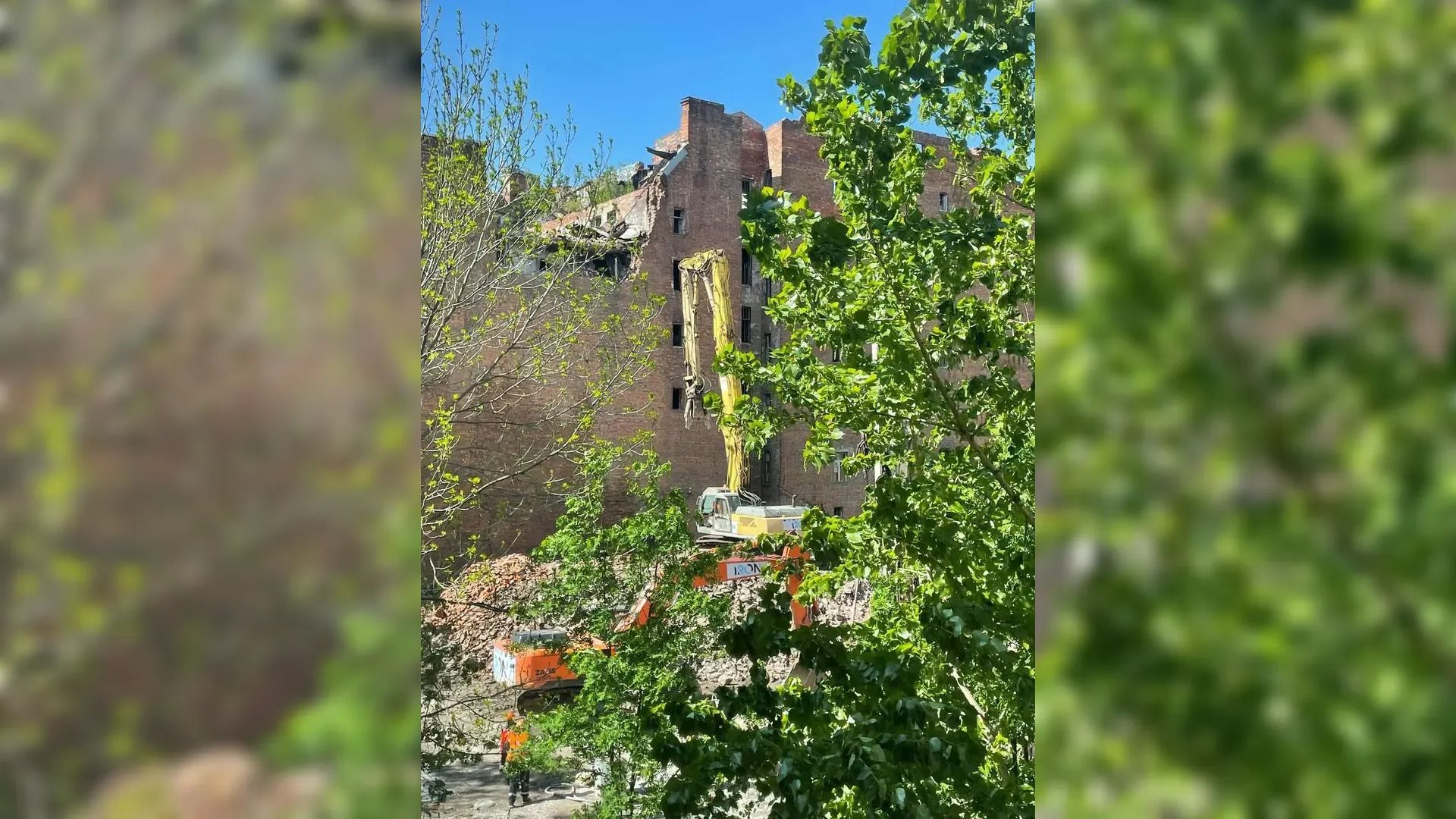 Telegram / «SOS СПб СНОС»Дом Басевича начали сносить в четверг, 18 мая. Здание находится на Большой Пушкарской улице, 7. Днем ранее городской суд отказал в мерах предварительной защиты, сообщили в Telegram-канале «SOS СПб СНОС».