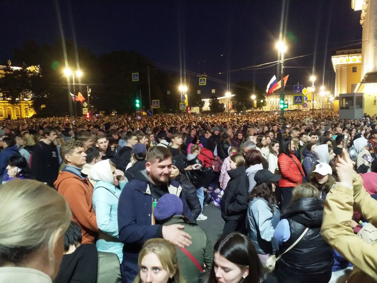 В центре города ночью 28 мая скопилось такое количество людей, что вновь пришедшим приходится разворачиваться восвояси за сотни метров от набережных.