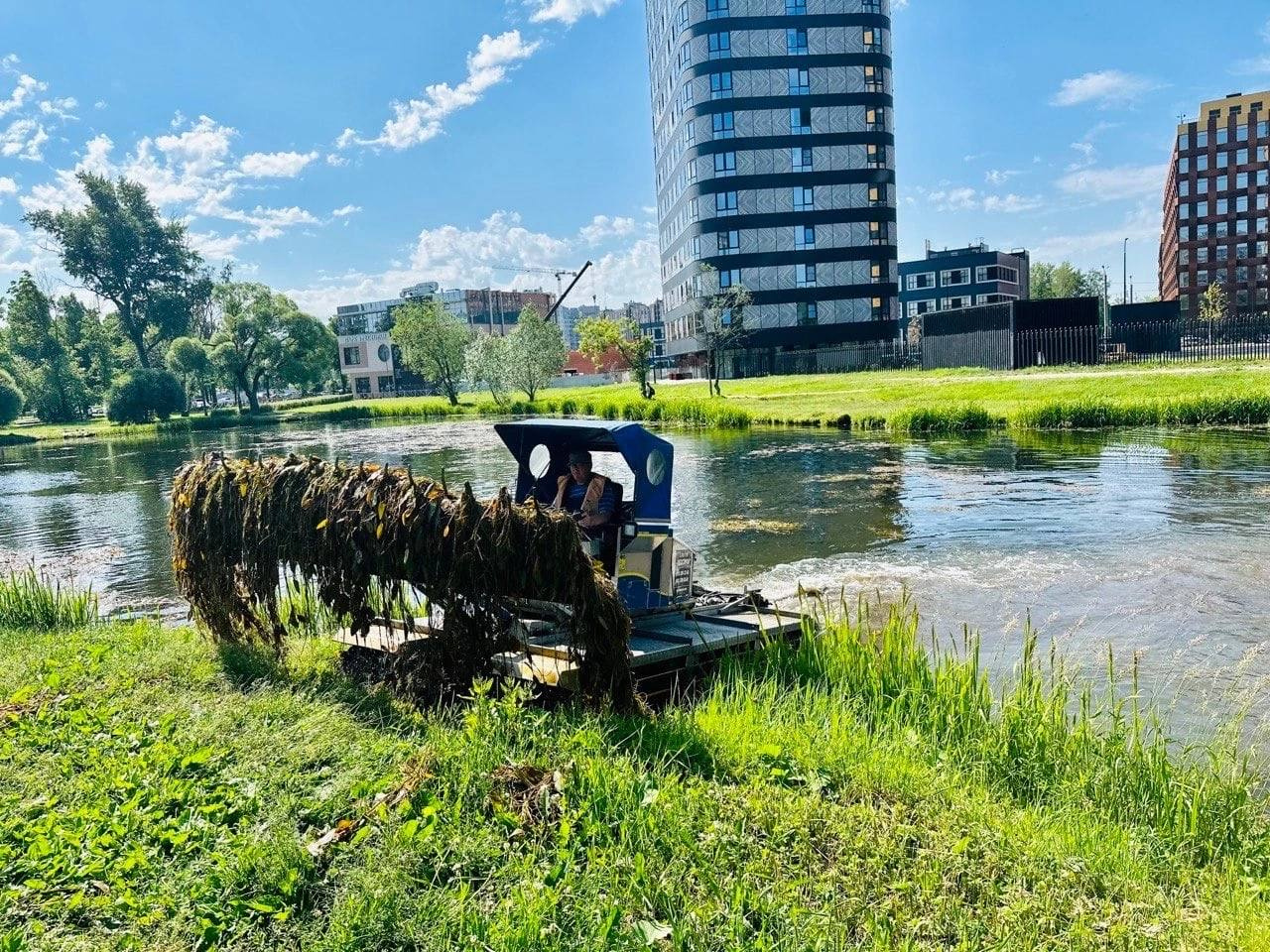 Сейчас в разгаре сезон покоса на городских водоёмах. Их избавляют от водорослей. Главная задача, как говорят специалисты, при этом не потревожить места гнездования птиц.