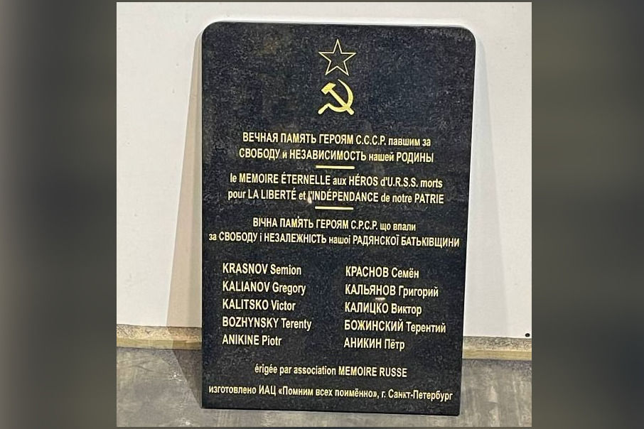Мемориальная доска, изготовленная в Петербурге в память о пяти советских воинах, погибших в фашистском плену, прибыла в Париж