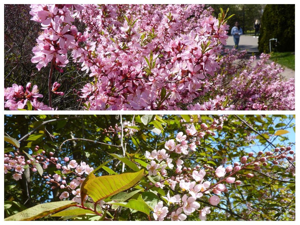 Миндаль и груша расцвели нежно пурпурными и кремовыми цветами в Ботаническом саду Петербурга
