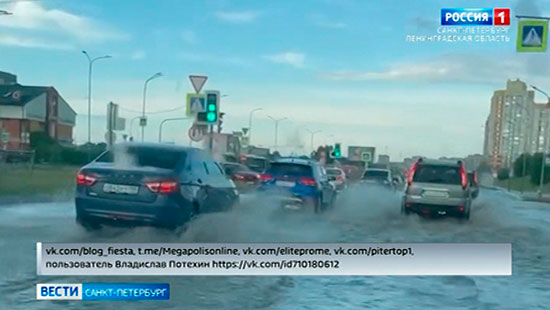 На Петербург обрушились кратковременные, но интенсивные дожди, местами с градом. В Интернете появились видео очевидцев с последствиями непогоды. В Московском, Красносельском и Приморском районах за 20 минут выпало более 9 миллиметров так называемых сверх расчётных осадков. Однако больше других досталось Пушкинскому району - почти 16 миллиметров - меньше, чем за полчаса. Система водоотведения работает исправно, но такой интенсивности осадков просто не выдерживает.
