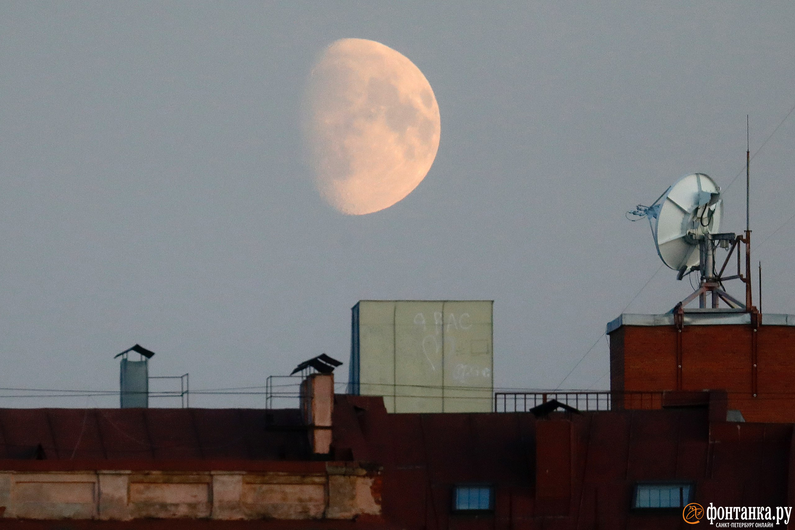 Над петербургскими крышами показалась потрясающая луна. Она сулит успех всем разбуженным