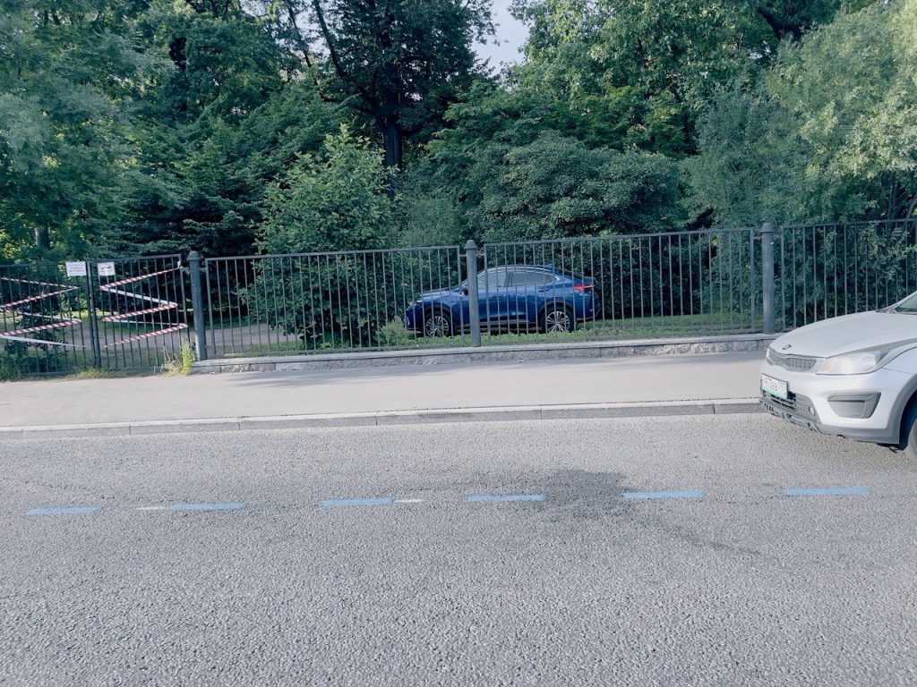 За забором парка Ботанического сада оказалась площадка, похожая на парковку. Редакция «Мойки78» отмечает , что припаркованный на территории пространства кроссовер должен был бы стоять в другом месте.
