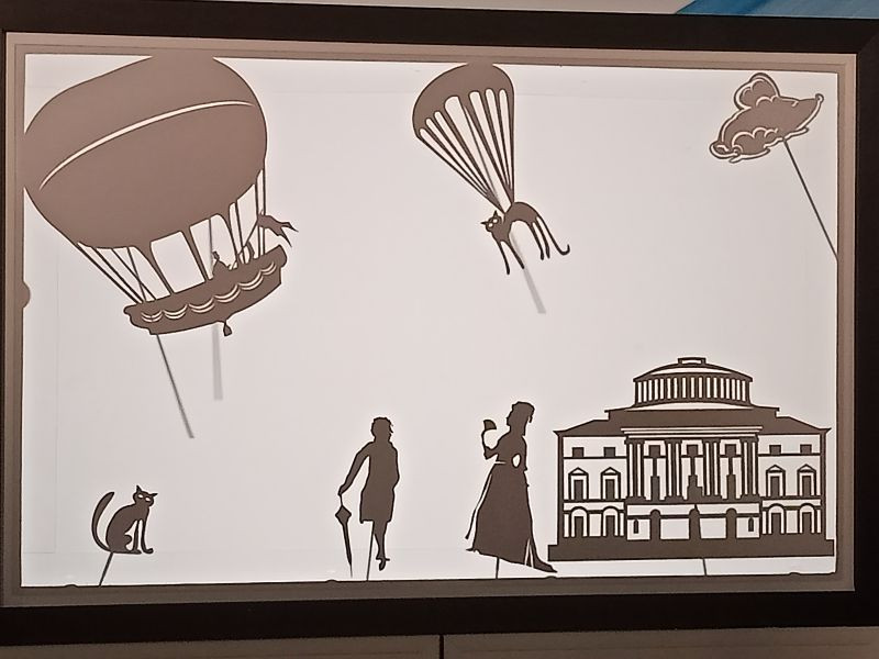 Кроме того, как и сейчас, тогда увлекались настольными играми и одним из центральных экспонатов экспозиции стала настольная игра XVIII века, построенная на хронике самых ярких событий воздухоплавания 1783–1784 годов. Также на открытии выставки был продемонстрирован, так называемый, Театр теней на тему полета кошки в Павловском парке в 1803 году.