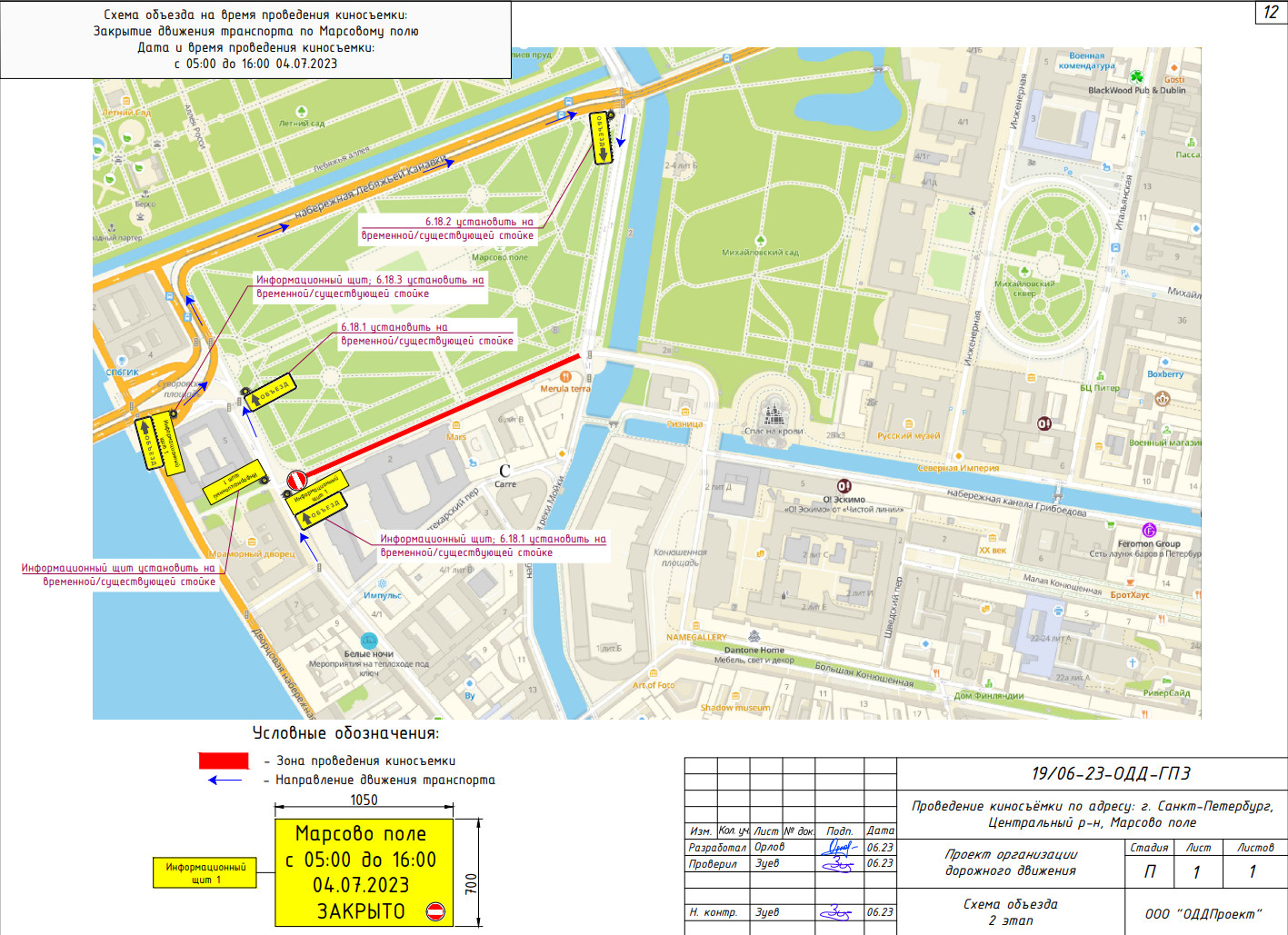 А с 5:00 до 16:00 движение по проезду вдоль Марсова поля будет перекрыто.