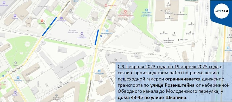 До 19 апреля 2025 года ограничат движение по улице Розенштейна от набережной Обводного канала до Молодежного переулка, у дома 43–45 по улице Шкапина, сообщает 7 февраля пресс-служба Государственной административно-технической инспекции Петербурга. Водителей потеснят для размещения пешеходной галереи.