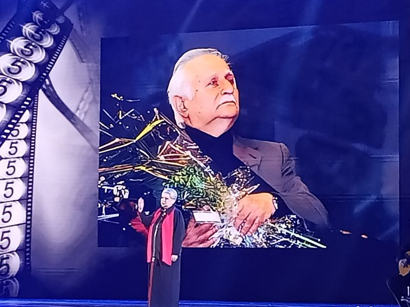 Первым на сцене появился экран с большим портретом композитора Исаака Шварца, чье столетие со дня рождения отмечается в эти дни, и Светлана Крючкова, президент кинофестиваля «Виват кино России», исполнила его песню из кинофильма «Рабочий поселок». Много его мелодий и песен из кинофильмов звучали в этот вечер и публика с воодушевлением их узнавала.