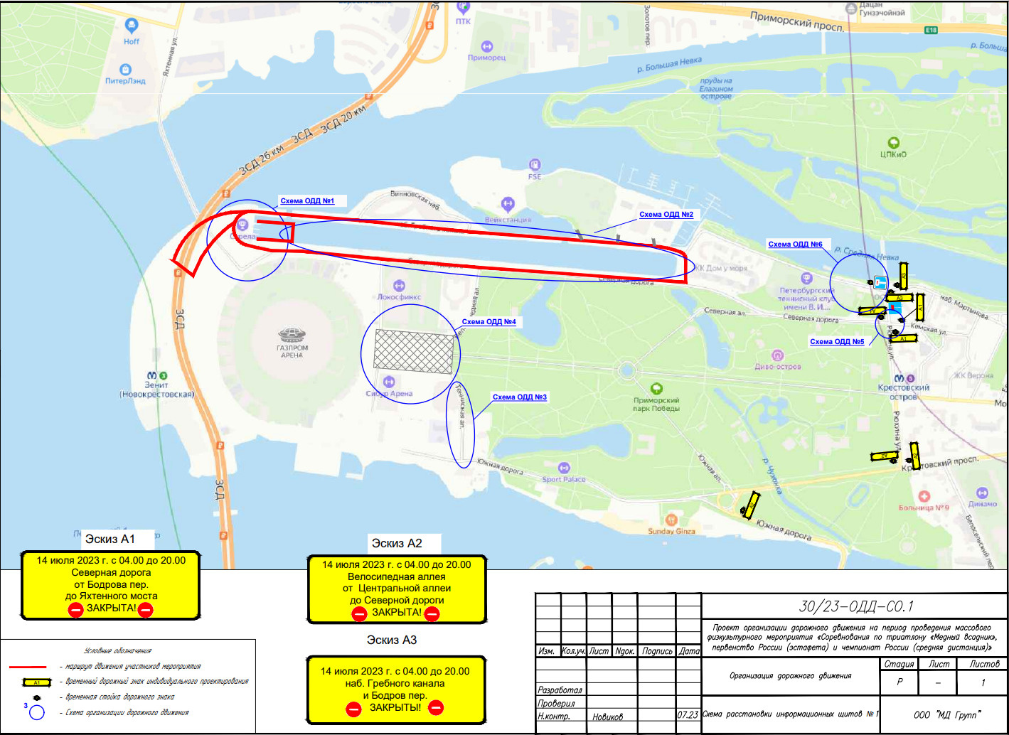 с 0:00 12 июля до 20:00 20 июля — на Футбольной и Центральной аллеях; с 4:00 до 20:00 14 июля — на Северной дороге от Бодрова переулка до Южной дороги, набережной Гребного канала, в Бодровом переулке, на Теннисной, Велосипедной, Футбольной и Центральной аллеях; с 13:00 до 17:00 15 июля — на Теннисной, Велосипедной, Футбольной и Центральной аллеях; с 3:30 до 17:00 16 июля — на Приморском проспекте в направлении от улицы Савушкина до дома 65 и Приморском шоссе в направлении от улицы Савушкина у комплекса «Лахта-цетр» до Савушкина у Планерной улицы; с 4:00 до 20:00 16 июля — на набережной Мартынова от Бодрова переулка до улицы Рюхина, в Бодровом переулке, на набережной Гребного канала, Северной дороге от Бодрова переулка до Южной дороги и Южной дороге от Теннисной аллеи до Северной дороги; с 4:00 16 июля до 2:00 17 июля — на Теннисной, Велосипедной и Центральной аллеях. Фото: Комитет по транспорту ПетербургаТакже введут запрет остановки транспорта: