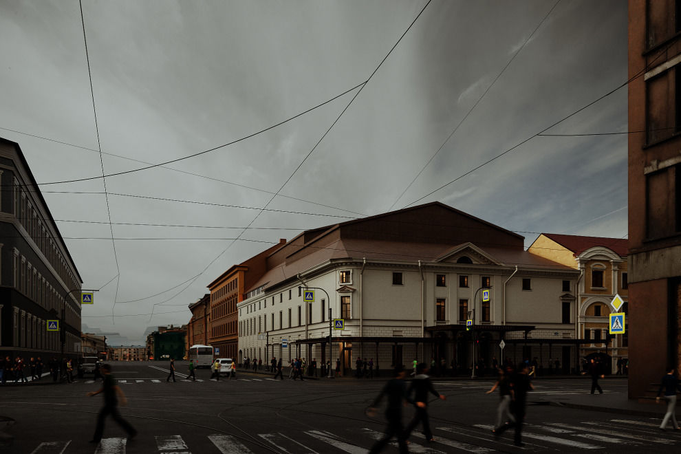Фото: пресс-служба Смольного Проект реконструкции разрабатывает ООО «НИиПИ Спецреставрация». Предполагается, что на объекте будет увеличен конек кровель для размещения зрительного зала и колосников, а также устройство подземного пространства для вспомогательных функций. Кроме того, на заседании Совета по сохранению культурного наследия призвали восстановить и исходный облик здания.