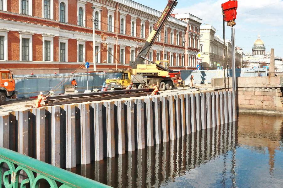 Стройка у трехмостья. Набережную Мойки ставят на бетонный ростверк