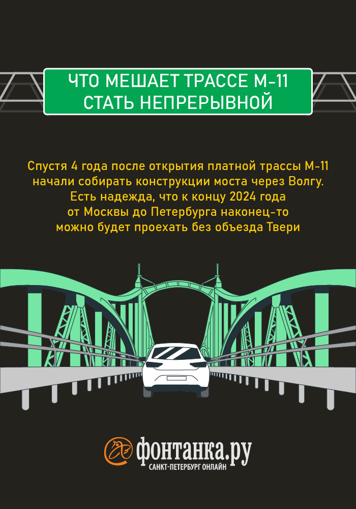 Проезд по участку трассы М-11 «Нева», который строится в обход Твери за государственные деньги, будет платным, заявили в «Автодоре». Ожидается, что к концу 2024 года дорога из Петербурга в Москву может стать непрерывной. Но почему этого не сделали сразу и что мешало? Ответы — в наших карточках.