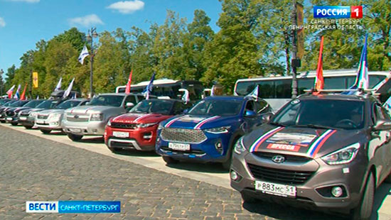 Патриотический автопробег, посвящённый юбилеям двух старейших российских флотов. Балтийскому в этом году - 320 лет, а Северному - 290. В начале июня двадцать автоэкипажей из разных городов России и Белоруссии стартовали в Североморске. А финишировали на Якорной площади в Кронштадте. За 10 дней его участники - моряки и ветераны - проехали более трёх тысяч километров. В каждом городе участники автопробега встречались с молодёжью, рассказывали о службе на Северном флоте. На капотах машин - фотографии кораблей, подводных лодок и самолётов морской авиации. На Якорной площади участники патриотической акции развернули копию Андреевского флага площадью 290 квадратных метров. Как символ военной мощи и единства армии и народа.