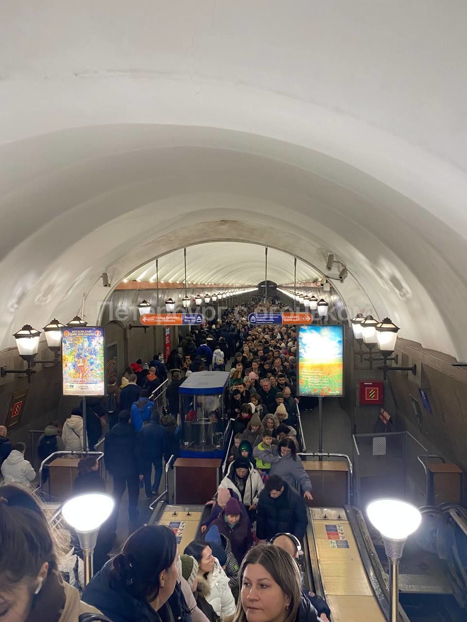 «Пробки на дорогах, пробки в метро. Переход со станции «Достоевская» на «Владимирскую», – отметили авторы поста, размещенного в Telegram-канале «Петербург с огоньком».