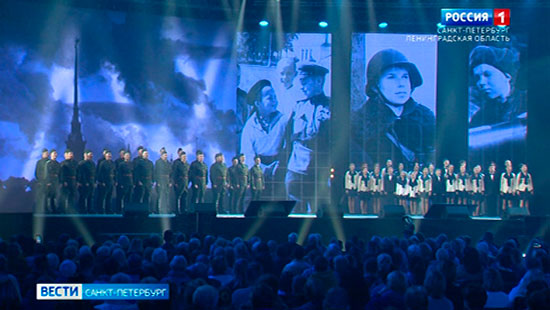 Непокорённый герой - Ленинград. Вечером памятную дату отметили большим концертом в Ледовом Дворце. Вспоминали о подвиге осаждённого города и о мужестве его жителей. Зрителей приветствовал губернатор Петербурга Александр Беглов. Приглашённые услышали фрагменты седьмой симфонии Дмитрия Шостаковича и стихотворения Ольги Берггольц. Литературные композиции и танцевальные номера дополнила хроника блокадных дней. Песню о Ладоге в исполнении Василия Герелло зал слушал стоя. Выступили и другие известные артисты, и солисты петербургских хоров.