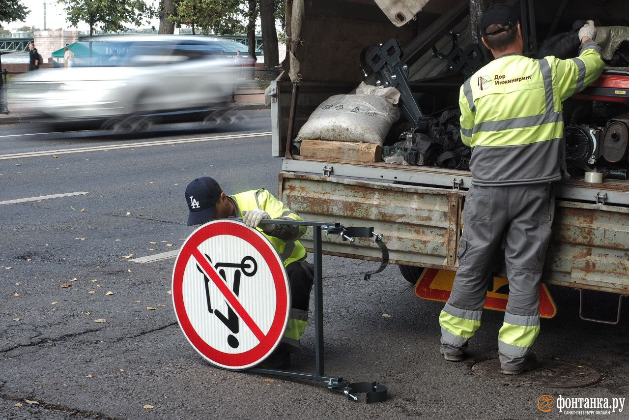 В Петербурге 6 сентября установили первые дорожные знаки, запрещающие движение электросамокатов и других средств индивидуальной мобильности (СИМ).