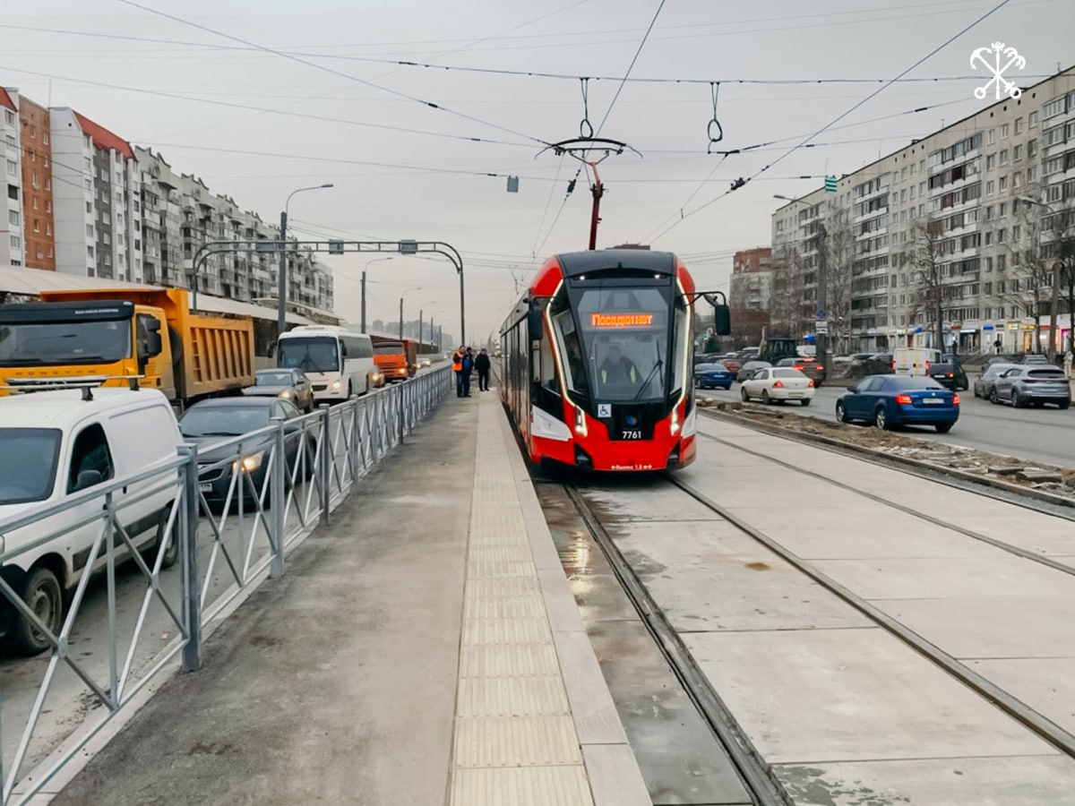 В Петербурге завершили ремонт трамвайных путей на участке от проспекта Просвещения до Шостаковича