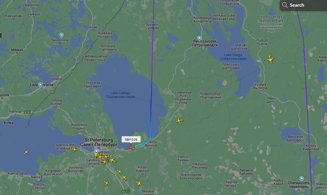 Судя по данным Flightradar24, самолет уже практически добрался до Мурманска, но был вынужден сделать петлю и направиться в сторону Петербурга.