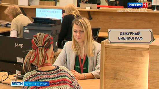 Сегодня в новом здании Российской национальной библиотеки на Московском проспекте открыли информационный центр для читателей. Пространство объединяет сразу несколько функций. На площади в 350 квадратных метров дежурят сотрудники библиотеки. Тем, кто пришёл впервые, они помогают выбрать нужный зал. Навигацией по каталогам занимаются профессиональные библиографы. С их помощью можно найти необходимую литературу, оформить электронный заказ книги и получить рекомендации по работе с источниками. Центр оборудован компьютерами, уютными рабочими местами. Есть площадка для проведения лекций. Открытие информационного центра для читателей приурочили ко дню рождения Российской национальной библиотеки. 14 января ей исполнилось 209 лет.
