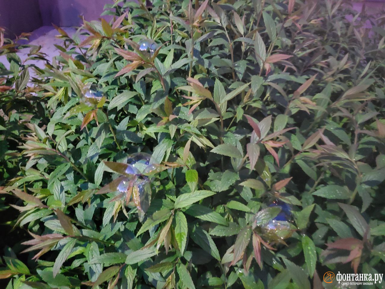 Фото: читатель «Фонтанки» Александр«Воздушный виноград» петербуржец сфотографировал на Образцовой улице. По его словам, пузырями был усыпан «каждый куст и столб» — были они и на асфальте, но быстро пропали. Наш собеседник отметил, что появились эти шарики после дождя — он заметил их около одиннадцати вечера, а ближе к полуночи они уже исчезли.