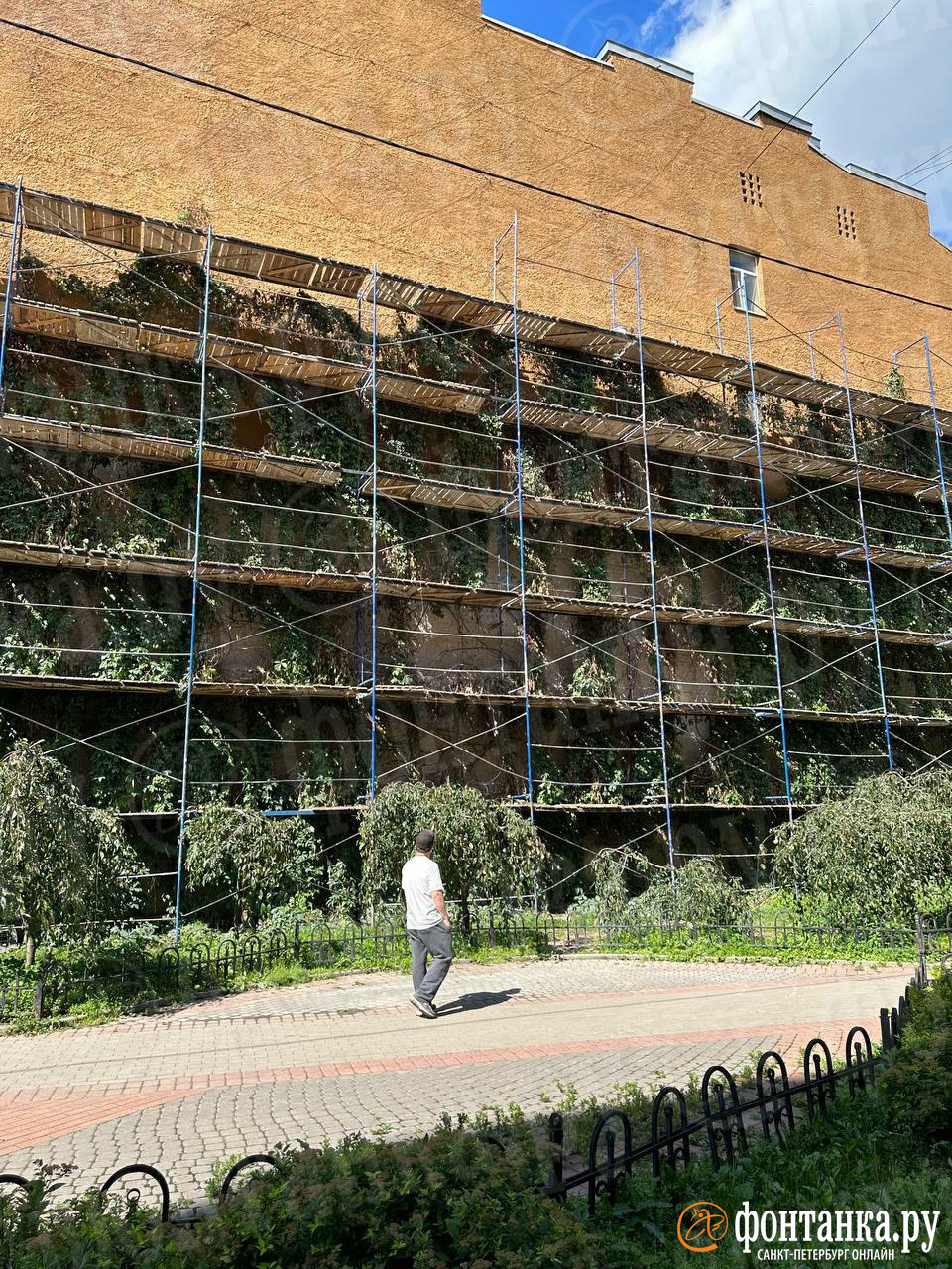 Зеленая стена винограда на доме в центре Петербурга «заболела» после ремонта фасада